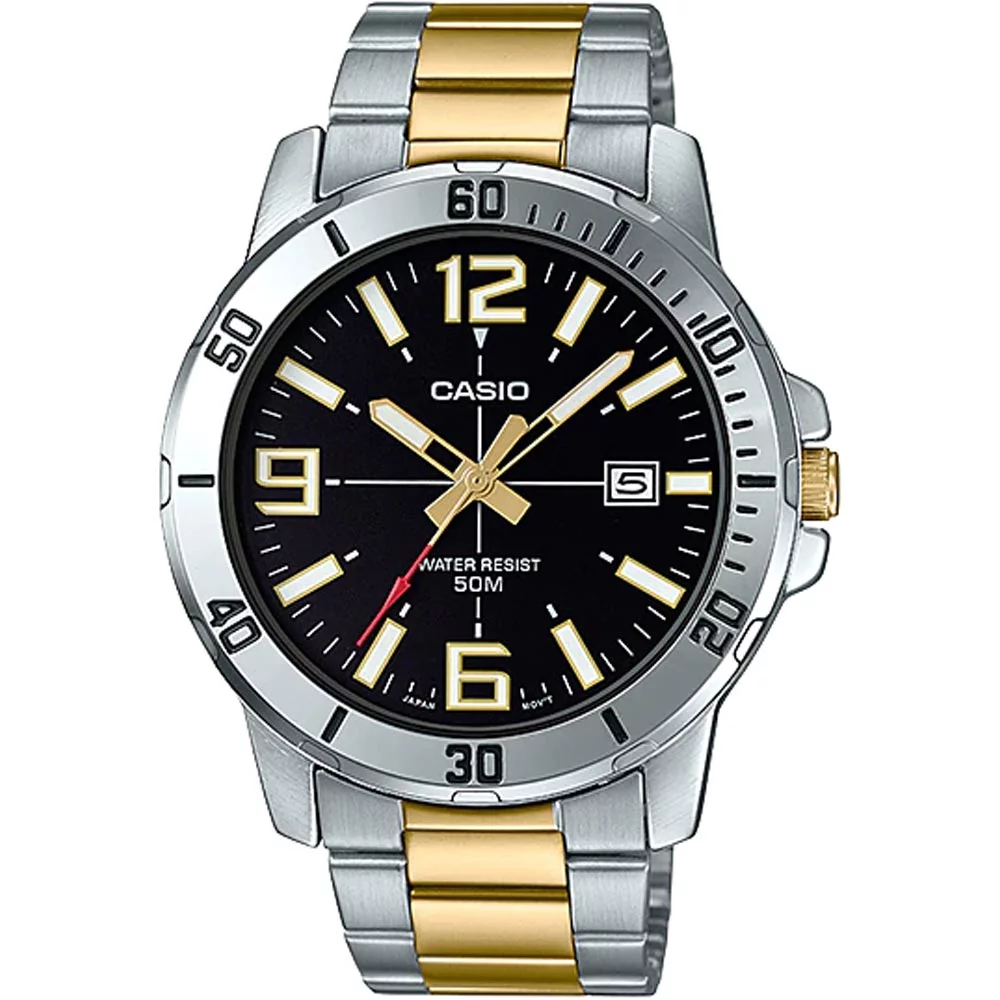 Casio MTP-VD01SG-1B two tone stainless steel band & black analog dial men’s